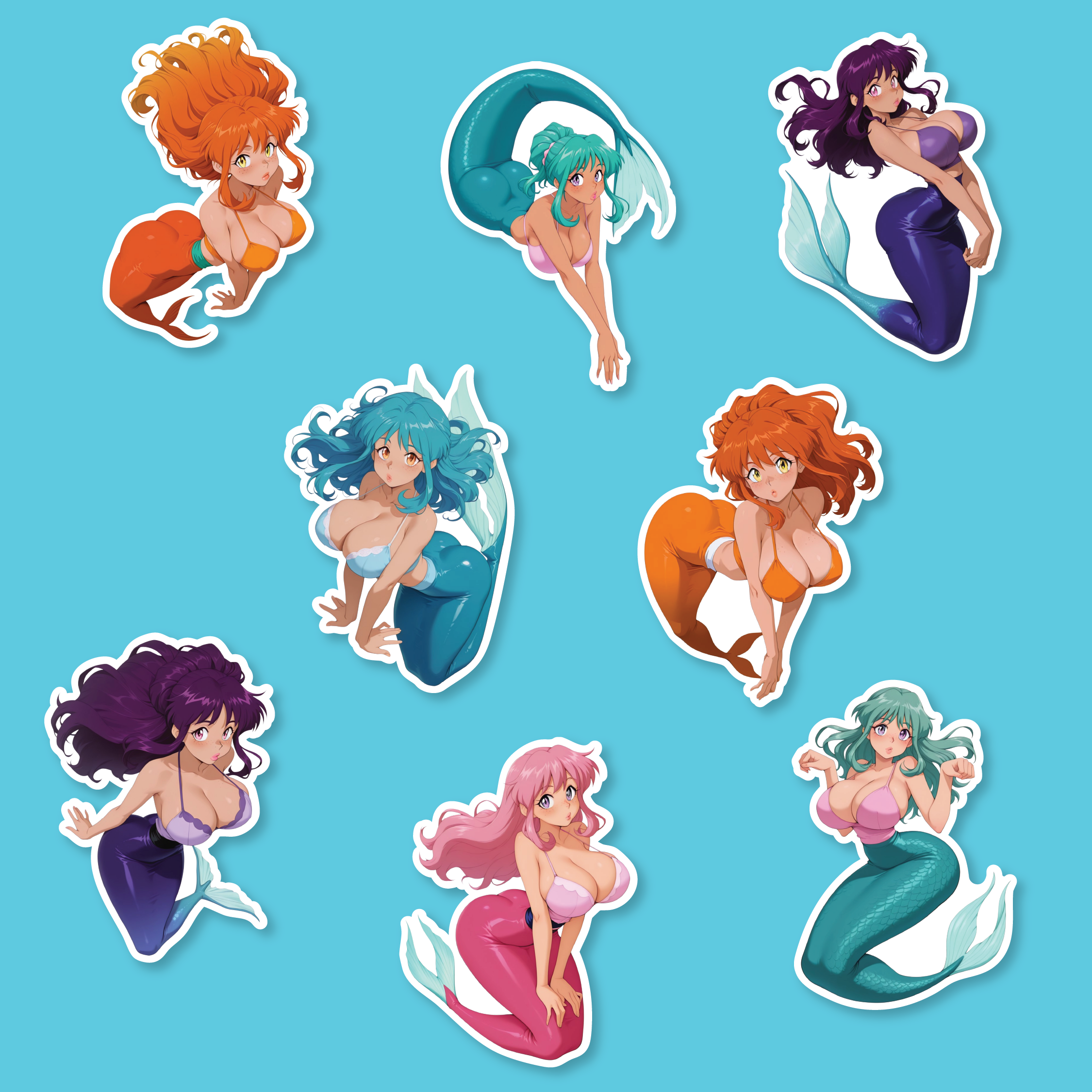 Dive into the world of ecchi and fantasy with this exclusive collection of holographic stickers, featuring explicit anime scenes and seductive waifu characters in stunning detail. Each design showcases curvaceous heroines in alluring poses, capturing their sensual appeal in a captivating way.
